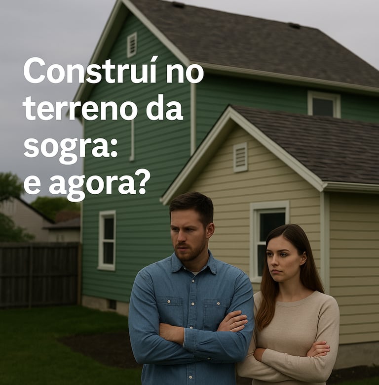 Esse é um dos cenários mais delicados, mas totalmente possível. Imagine um casal que constrói no terreno da mãe de um deles. Em caso de separação, o cônjuge que não tem vínculo com a sogra pode sair de mãos abanando, mesmo tendo contribuído financeiramente.